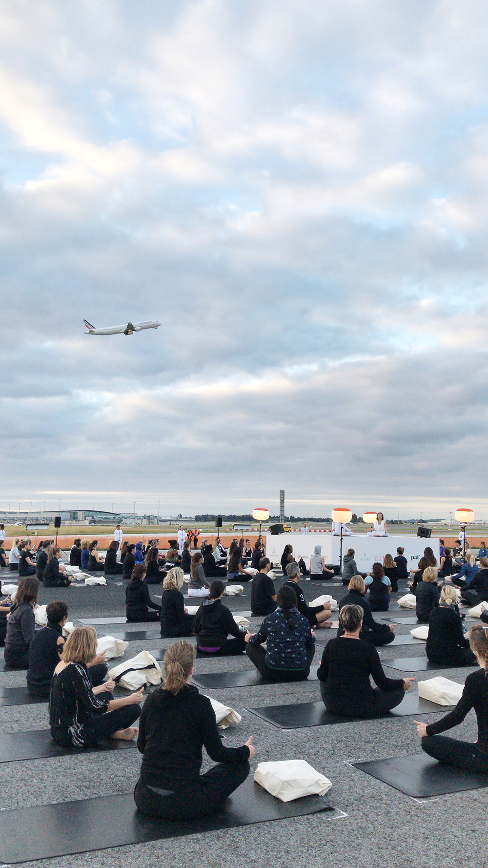 Cours de yoga géant sur les pistes de Charles de Gaulle